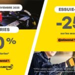 -25% sur les essuie-glaces achetés et posés en magasin (hors pose) sur les marques Continental, et Valeo