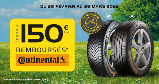 Du 28 Février au 26 Mars 2022, jusqu’à 150€ remboursés* pour l’achat de pneumatiques de marque Continental été, hiver ou […]